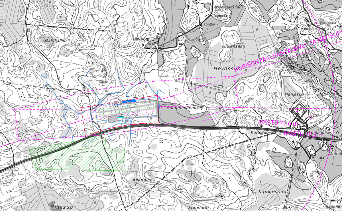 Lentopaikalle nousee myös 900 neliömetrin huolto- ja säilytyshalli. Kiitotien ja metsäalueen välissä olevalle meluvallille on suunniteltu 3500 neliömetriä kattava aurinkopaneelien keräyspiste. Koko kenttäalueen rakentaminen arvioitiin kestävän 6-7 vuotta. AVI:n myöntämä ympäristölupa koskee pienlentokoneiden ja helikoptereiden lentopaikkaa sekä betonin ja ylijäämämaa-aineksen hyödyntämistä lentopaikan maarakentamisessa sekä maarakentamisessa hyödynnettävän betonin ja lentopaikan alueelta louhittavan kiviaineksen murskausta. AVI: lupa mahdollistaa myös toiminnassa syntyvän jäteveden johtamisen ojaan.
