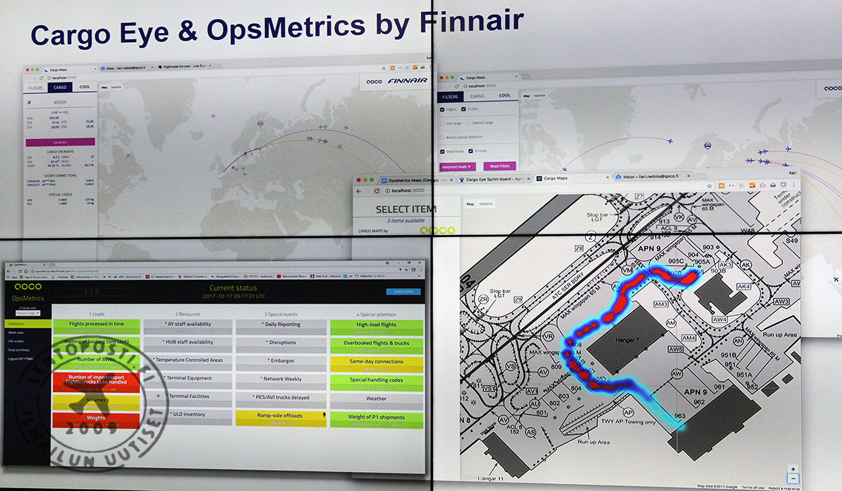 Finnair Cargo vietti uuden Helsinki-Vantaan lentoasemalla sijaitsevan COOL Nordic Cargo Hubin virallisia avajaisia joulukuussa. Jättimäinen ja Euroopan modernein rahtiterminaali otetaan käyttöön tammikuussa 2018. Tuotannonohjauksen avuksi tulee uusi Slush-tapahtumassakin esitelty eri tietoja yhdistävä Cargo Eye & OpsMetrics -sovellus.