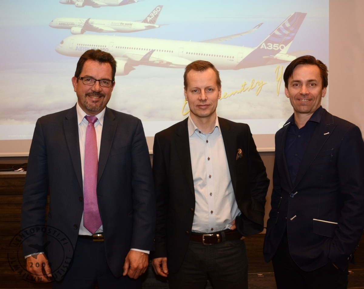 Uudet koneet tuovat matkustajaa kohden 25 prosentin säästöt polttoaineessa verrattaessa A340-kalustoon. Kapasitetti kasvaa niin matkustajaliikenteessä kuin rahdissa. Ihon mukaan kaikki muut ovatkin uuteen konetyyppin tyytyväisiä paitsi JET A1 -kerosiiniä myyvät yhtiöt. Aluksi Finnair lentää A350 XWB -koneella ohjaamomiehistökoulutuksena lyhyitä ns. FAMI-lentoja (Familiarization) Euroopan reiteillään. Niiden päivämäärät ja kohteet selviävät 9. huhtikuuta uusien aikataulujen myötä. FAMI-lentoja hyödynnetään samalla myös uuden konetyypin tunnetuksi tekemiseen yhtiön kohteissa. Saahan Finnair A350 XWB:n käyttöönsä ensimmäisenä eurooppalaisena lentoyhtiönä. Kaukoreittien kohteisiin sillä aletaan lentää järjestyksessä Shanghai, Peking, Bangkok, Hong Kong ja Singapore. Vertti Kivi sisustaa valolla Suunnittelija Vertti Kivi kertoi miten uuden koneen led-valaisun tuomia mahdollisuuksia on hyödynnetty sisustuksessa. Ledeillä pystytään näyttämään 16,8 miljoonaa värisävyä, jotka voidaan ohjelmoida tuottamaan haluttu tunnelma matkustamoon.
