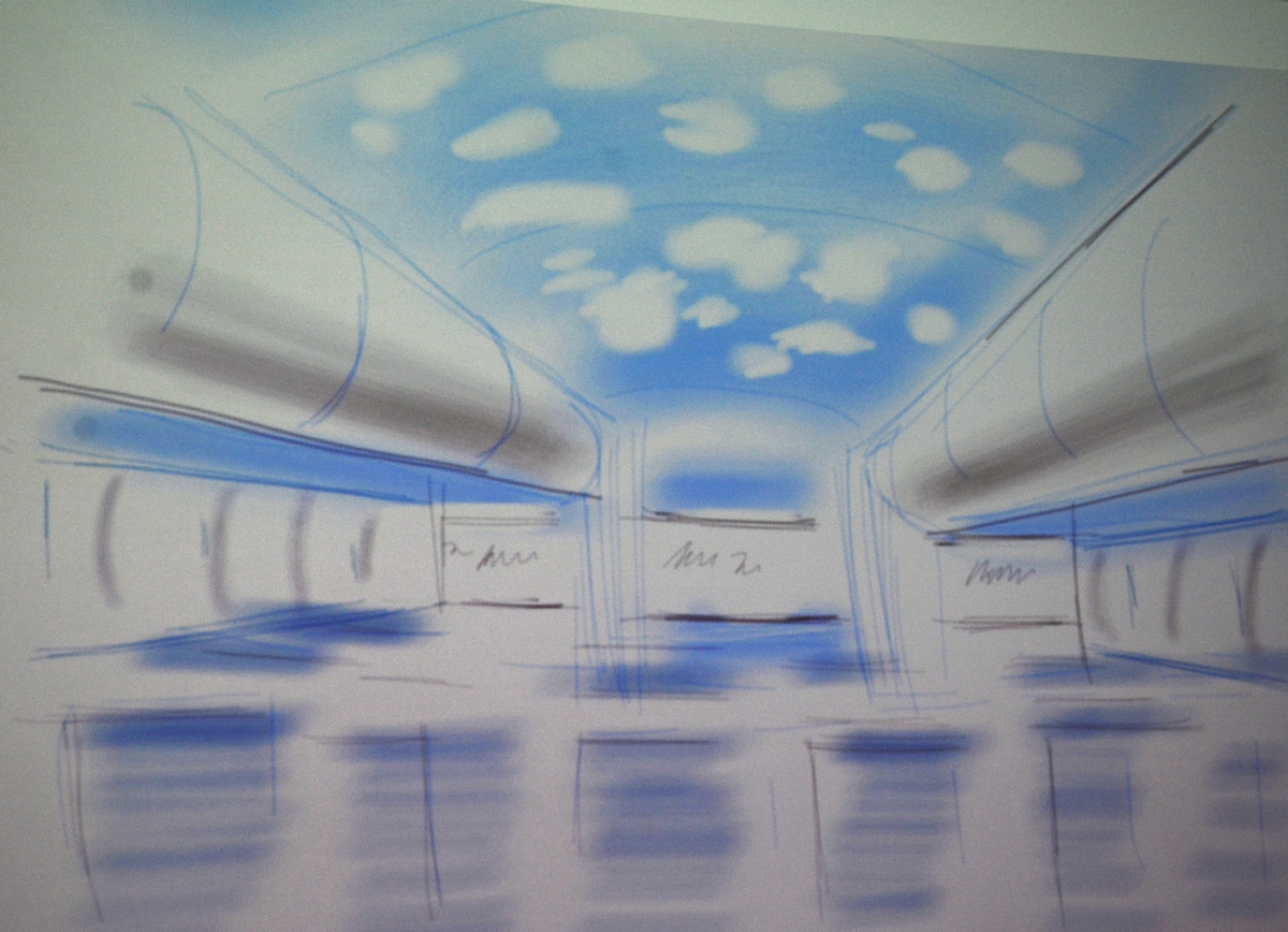 Vertti Kiven ideana on tuoda reittivaiheen mukaisesti matkustamoon Skandinavian viileyttä tai Aasian lämpimiä värisävyjä. Valaistus muuttuu jatkuvasti 20 minuutin sykleissä ja esimerkiksi ruokatarjoilujen ajaksi. Nykyisten Finnairin koneiden harmaat istuinpäälliset ovat väriltään arkoja ja tekniikan henkilöstö joutuu vaihtamaan niitä liikaantumisen takia. A350 XWB:ssä tämä ongelma on huomioitu, vaikka värimaailma ei juurikaan muutu. Istuinten kangas on uusi: se on teflon-käsiteltyä ja vesipestävää. Materiaali on Kiven mukaan suunnittelutoimiston erityisesti Finnairin koneisiin valitsema. Luonnollisesti kangas samalla on myös mm. matkustajakoneiden materiaalien paloturvallisuusvaatimusten mukainen. Vertti Kivi kertoi myös harkinneensa paksumpia mattoja. Ne eivät olisi olleet kovin paljon kalliimpia, mutta niiden tuoman lisäpainon lennättäminen olisi tuonut 7 miljoonan euron lisäkustannukset. Niinpä ideasta luovuttiin. Bausor: A350-koelentokoneista voi tulla VIP-versioita