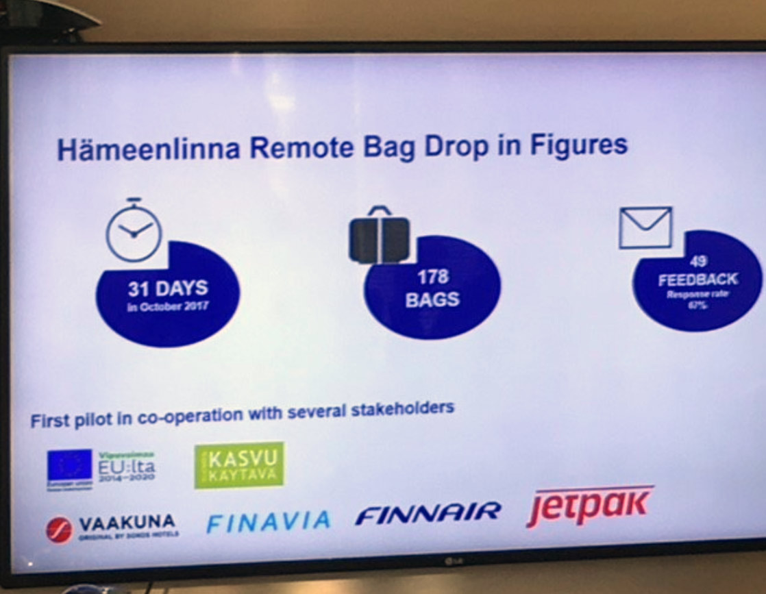Pilotin asiakaskysely lähetettiin 73 matkustajalle, joista kyselyyn vastasi 49 henkilöä (67 %). Heistä 80 % koki matkalaukkujen etälähtöselvityksen erinomaisena kokemuksena ja antoi sille arvosanan 10. Kaikki vastaajat kertoivat olevansa valmiita käyttämään palvelua myös jatkossa, jos se yleistyy. "Palvelun koettiin sujuvoittaneen matkalle lähtöä ja säästäneen aikaa lentoasemalla. Vastaajat nostivat myös esille, että oli helpompaa mennä Hämeenlinnasta Helsinki-Vantaalle julkisilla kulkuneuvoilla, kun mukana ei ollut painavia matkatavaroita", kertoo Horila. Pilottiin osallistuneista yli puolet kertoi matkustaneensa Helsinki-Vantaan lentoasemalle joko bussilla tai junalla. Noin 90 % etälähtöselvityspalvelua käyttäneistä oli vapaa-ajan matkustajia. "Kokeilu antoi siihen osallistuneille tahoille varmasti lukuisia ideoita asiakaskokemuksen kehittämiseen. Palvelu on erittäin kiinnostava, mutta vielä pitänee pohtia prosesseja, toimintatapoja ja kustannuksia kokonaisuutena", toteaa Horila. Hämeenlinnassa matkatavaroiden etälähtöselvityspilotin toteuttivat yhteistyössä Sokos Hotel Vaakuna, Finnair ja Finavia. Pilotin mahdollisti Suomen kasvukäytävä -verkoston Ketterä ja kestävä liikkuminen -hanke. Lue myös: