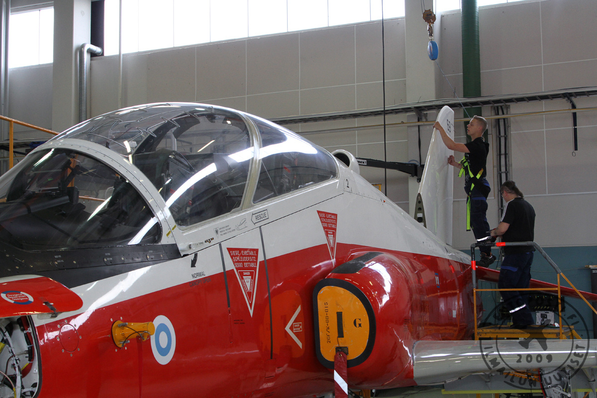 “Huolto, korjaus ja modifikaatiot ovat on Patrian ydinosaamisaluetta. Patrian ilmailutekninen osaaminen kattaa laajan palveluvalikoiman vaurio- ja korjausanalyysistä ennaltaehkäisevien modifikaatioiden ja rakenteiden kunnonvalvontaohjelmien suunnitteluun.” Hawkit Suomessa Päätös Hawkien hankkimisesta Ilmavoimien ikääntyvän ranskalaisen Fouga CM.170 Magister -suihkuharjoituskonekaluston seuraajaksi tehtiin vuonna 1977. Ilmavoimat etsi tuolloin modernia konetyyppiä, joka toimisi suomalaisten sotilaslentäjien lentokoulutusjärjestelmässä jatko- ja taktisen koulutuksen työkaluna. Uuden suihkuharjoituskoneen roolina oli toimia ohjaajaoppilaan ensikosketuksena suihkukonekalustoon mäntämoottorisella Valmet L70 Vinka -alkeiskoulukoneella tapahtuneen lentämisen perusteiden opiskelun jälkeen. Sen tuli voida myös valmentaa ohjaaja siirtymään turvallisesti ja tehokkaasti edelleen erittäin suorituskykyisen suihkuhävittäjäkonekaluston ohjaimiin. Evaluointityön tuloksena ilmavoimien valinta kohdistui kolme vuotta aiemmin ensilentonsa tehneeseen brittiläisvalmisteiseen Hawker Siddeley (British Aerospace, nykyään BAE Systems) Hawkiin. Suomi oli myöhemmin menestyksekkääksi vientituotteeksi muodostuneen konetyypin ensimmäinen ulkomainen asiakas. Ilmavoimien alkuperäinen Hawk-hankinta käsitti viisikymmentä Mk51 -tyypin konetta. Neljä niistä rakennettiin Britanniassa ja loput koottiin kotimaassa Valmetin Kuoreveden (nykyisin Jämsän) Hallin tehtailla. Ensimmäinen Hawk tunnuksella HW-302 siirtolennettiin Ison-Britannian Dunsfoldista Satakunnan lennoston Porin tukikohtaan, johon se laskeutui tiistaina 16.12.1980. Vuonna 1993 Ilmavoimat tilasi seitsemän Hawk Mk51A -koneen lisäerän. Vanhemmat paljon lennetyt Hawkit läpikävivät mittavan rakenteiden vahvistuksen Patrian toimesta Suomessa 1990-luvun lopussa. Vuonna 2007 Suomeen hankittiin Sveitsistä 18 vähän lennettyä puna-valkoista Hawk Mk66 -konetta. Varastoituina olleet koneet otettiin käyttöön onnistuneiden Patrian suorittamien modifiointi- ja muutostöiden jälkeen 2011 - 2013. Hawkien viimeisin laaja modernisointityö alkoi vuonna 2007, jolloin vähemmän lentäneiden koneyksilöiden perinteisillä analogisilla mittareilla varustettuja ohjaamojärjestelmiä nykyaikaistettiin muun muassa moderneilla näyttölaitteilla, tehtäväntallenninlaitteistoilla ja HUD-heijastusnäytöillä (Head Up Display).