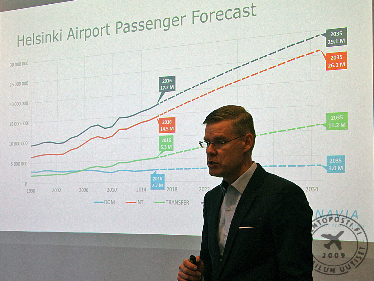 Pidemmän vuoteen 2035 saakka menevän ennusteen mukaan Helsinki-Vantaalla olisi jo huimat 35 miljoonaa vuosittaista matkustajaa. Kovan kasvun seurauksena lentoaseman maapuolen kulkuyhteyksien ruuhkautuminen pahenee. Finavia onkin käynnistänyt hankkeen ns. keskiterminaalin uudistamiseksi. Rakennettavan uudisosan on määrä olla valmistua 2020-luvun alkupuolella. Uudisosaan rakennetaan tilat lähtöselvitystä, turvatarkastusta, matkatavaroiden luovutusta ja matkustajien vastaanottamista varten.
