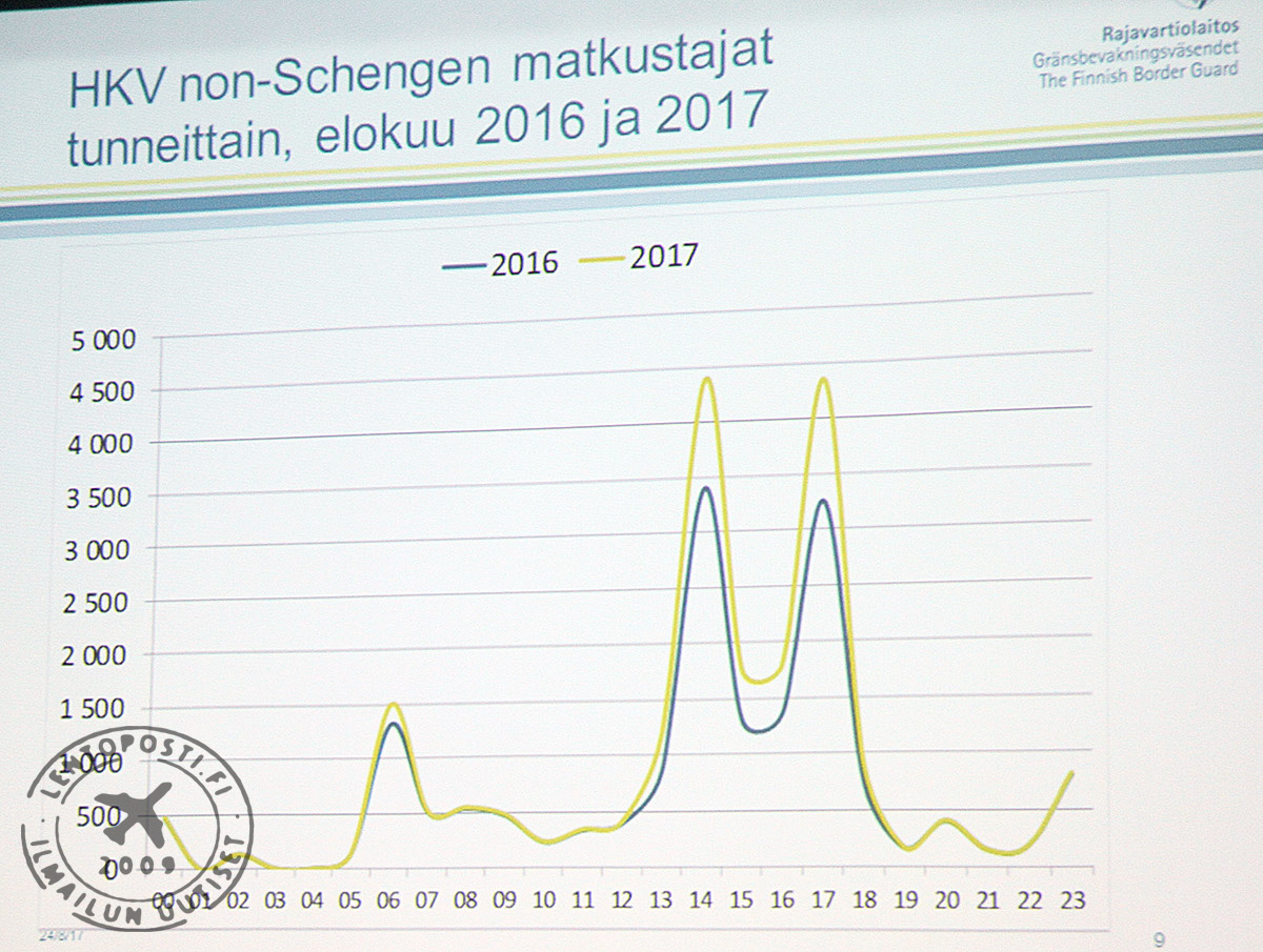 ”Rajat ylittävän matkustajaliikenteen kasvu on ollut hurjaa. Prosentuaalinen kasvu on ollut suurempaa kuin koskaan aiemmin”, kommentoi Helsingin rajatarkastusosaston päällikkö Jussi-Pekka Tanninen.