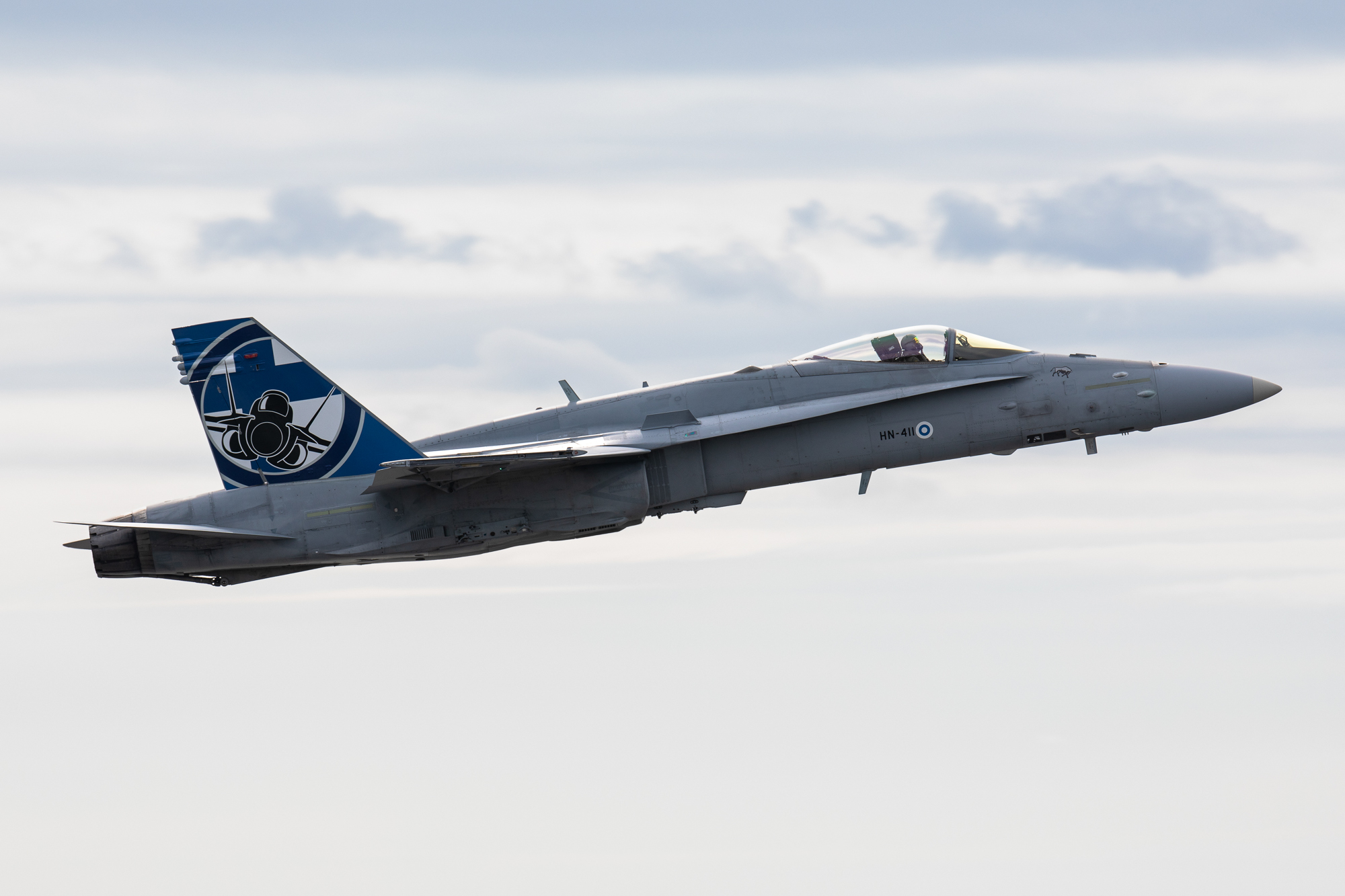 Nyt kyseessä on siis ensimmäinen kerta, kun Ilmavoimien ensilinjan hävittäjä esiintyy Suomessa virallisessa erikoisvärityksessä. Syyskuussa 2022 ilmavoimien Hornet-solo nähtiin samanlaisissa erikoisteippauksissa Tšekissä NATO Days in Ostrava & Czech Air Force Days -tapahtumassa. Tuolloin koneyksilönä oli HN-421. Aiemmin Horneteissa on nähty Krevi von Rosen -teksti (HN-457) sivuvakaajassa sekä pieniä laivuetunnuksia eturungossa. Ne ovat kuitenkin pysyviä merkintöjä eivätkä varsinaisia erikoismaalauksia.
