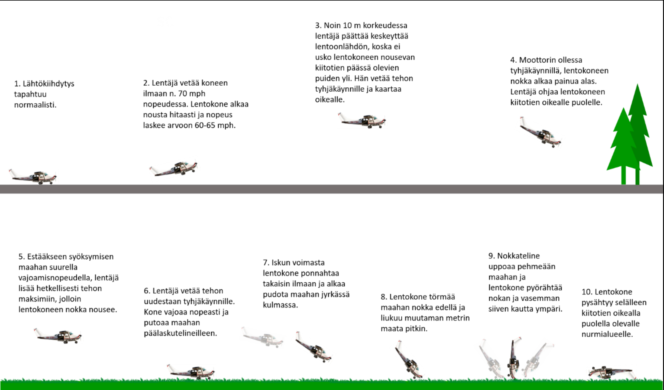 Onnettomuustutkinnassa selvisi, että kyseisen hyppykerhon eli SkyDive Karjalan lentäjille ei ollut täysin selvää, mikä moottori koneeseen oli asennettu ja sen myötä epävarmuutta oli myös suoritusarvoissa. Koneyksilöön oli vaihdettu moottori koneen historian aikana useita kertoja. Lentokoneen huoltokirjanpidossa moottorin vaihdot oli mainittu ja huomioitu oikein vaikka Traficomin tiedoissa oli epäjatkuvuutta. Kahden moottorityypin välillä oli tehoeroja ja koneessa oli pienempitehoinen versio. Tutkinnan mukaan lentäjät olivat siinä luulossa, että koneessa oli suurempitehoinen versio moottorista. Alustavan tutkinnan aikana OTKES päätyi siihen, etät onnettomuus tapahtui, koska lentoonlähdössä lentokone vedettiin ilmaan käsikirjassa ilmoitettua pienemmällä nopeudella. Maanpintavaikutuksen yläpuolella moottorin teho ei riittänytkään koneen nopeuden säilyttämiseen, saati kiihdyttämiseen. Lentäjä kertoo saaneensa ohjeet nostaa koneen nokkaa nopeudella 70-75 mph, kun oikea nopeus olisi ollut kyseisellä tyypillä 78 mph. OTKES totesi myös, että lentokoneen käsikirjassa mainittuja menetelmiä tulee noudattaa tarkasti. Lisäksi OTKES totesi, että kuormauksen ja säätilan vaikutus lentokoneen suorituskykyyn on tärkeä huomioida. Tapahtuman aikaan sää oli lämmin ja onnettomuuslennolla tuuli oli tyyntynyt. Myös kuormaus erosi saman päivän aiemmilta lennoilta. Alustavassa tutkinnassa ei anneta uusia suosituksia. OTKES kuitenkin huomauttaa edellisten selvitysten perusteella, että lentäjillä tulee olla selvillä sään ja kuormauksen vaikutus lentokoneen suorituskykyyn. Lisäksi laskuvarjohyppykerhojen lentäjien tulee tarkistaa käyttämiensä lentokoneiden menetelmät niin, että ne vastaavat lentokoneen asiakirjoja eri olosuhteissa. OTKES:n mukaan vakavammalta onnettomuudelta vältyttiin, koska lentäjä keskeytti nousuyrityksen ja siirtyi pakkolaskuun. Kyseisessä tilanteessa lentokone olisi voinut törmätä suurella nopeudella edessä olleeseen metsäkaistaleeseen. Onnettomuustutkintakeskus päätti alustavan tutkinnan perusteella, että tapauksen erityispiirteet eivät edellytä varsinaista tutkintaa. OTKES: L2020-E3 Immola alustavan tutkinnan raportti Lue myös: