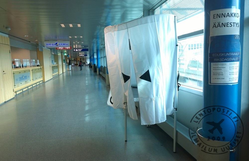 Ennakkoäänestysaika päättyy kotimaassa tiistaina 14. huhtikuuta (kuvassa oikealla Helsinki-Vantaan lentoaseman ennakkoäänestyspiste). Varsinainen vaalipäivä on sunnuntaina 19. huhtikuuta. Vaaleissa valitaan 200 kansanedustajaa noin 2000 ehdokkaan joukosta seuraavalle nelivuotiskaudelle.
