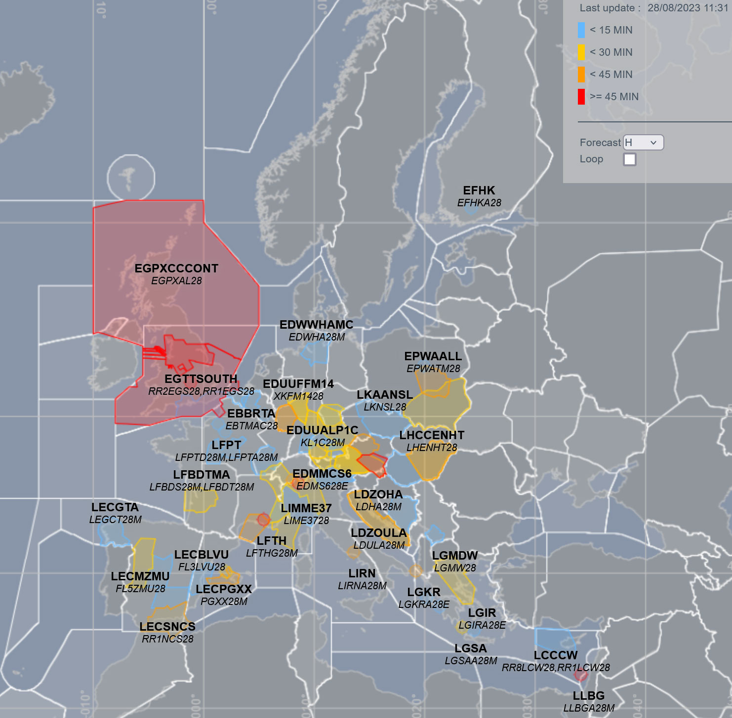 Eurocontrolin mukaan 28. elokuuta Ison-Britannian ilmatilassa oli suunniteltu operoitavaksi 5592 lentoa, jotka olivat lähtevää, saapuvaa ja ylilentävää liikennettä. Määrä oli noin 2000 lentoa vähemmän kuin ennustemalli. Lukujen ero selittyy perutuilla ja Ison-Britannian ilmatilaa kyseisenä päivänä vältelleillä lennoilla.