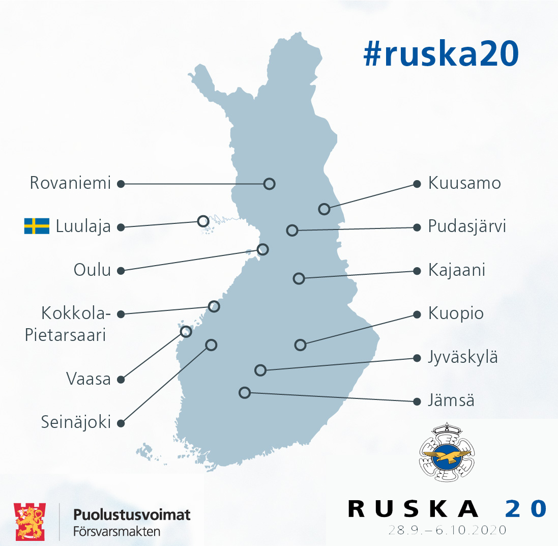 Ruska 20 -harjoitukseen osallistui 28.9. - 6.10. yli 60 lentokonetta ja noin 4 800 henkilöä ympäri Suomea. Ruskan kaltaiset joukkojen harjoitukset ovat tärkeitä, jotta henkilökunnan, varusmiesten ja reserviläisten osaaminen sekä valmius säilyvät kaikissa tehtävissä ja olosuhteissa.