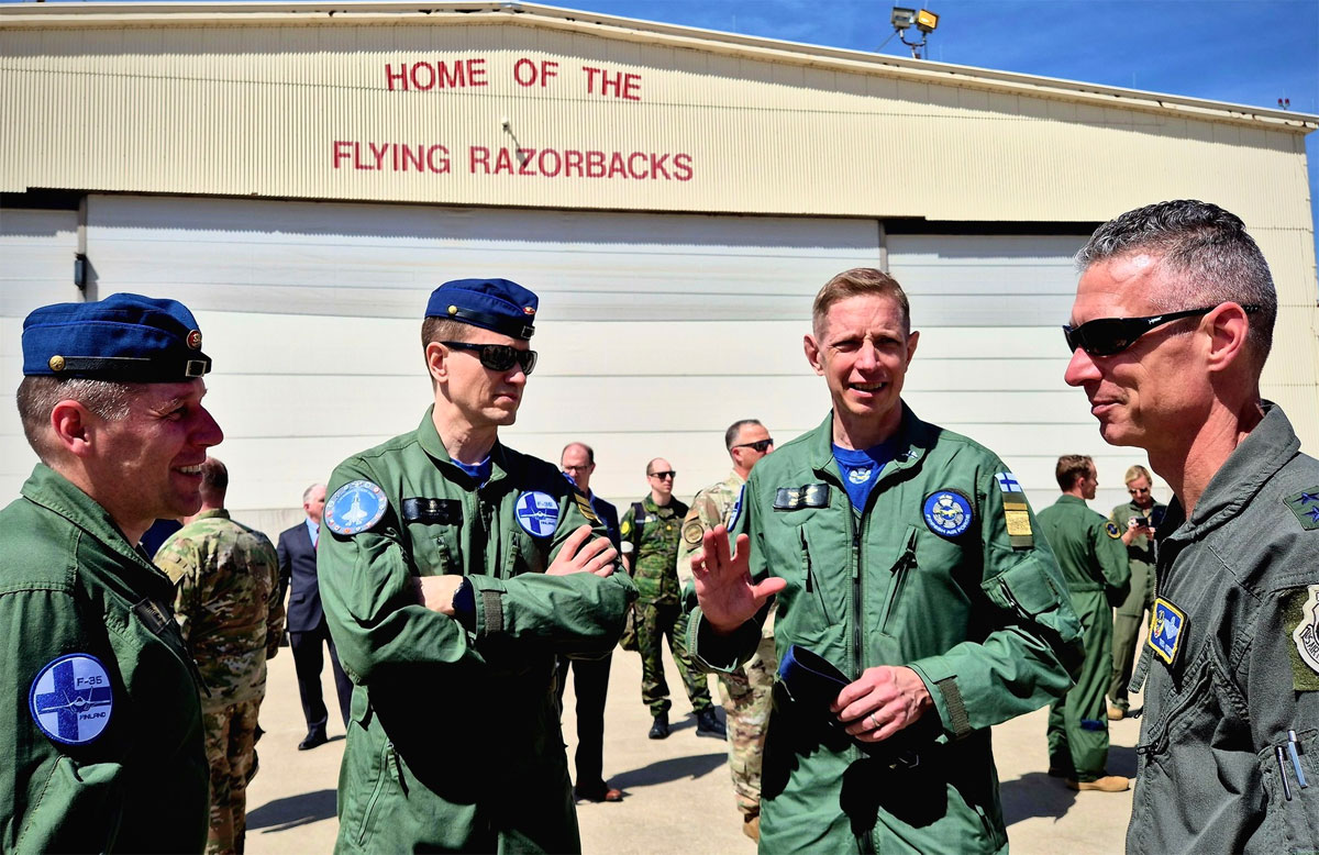 Ilmavoimien komentaja kenraalimajuri Timo Herranen tarkasti Ebbingin tukikohdan 24. maaliskuuta 2025. Fort Smithin kaupungissa Arkansasissa sijaitseva Ebbing on toinen yhdysvaltalaistukikohta, jossa Suomen F-35 -alkukoulutus toteutetaan. Vierailun aikana tukikohdassa liehui myös Suomen lippu.