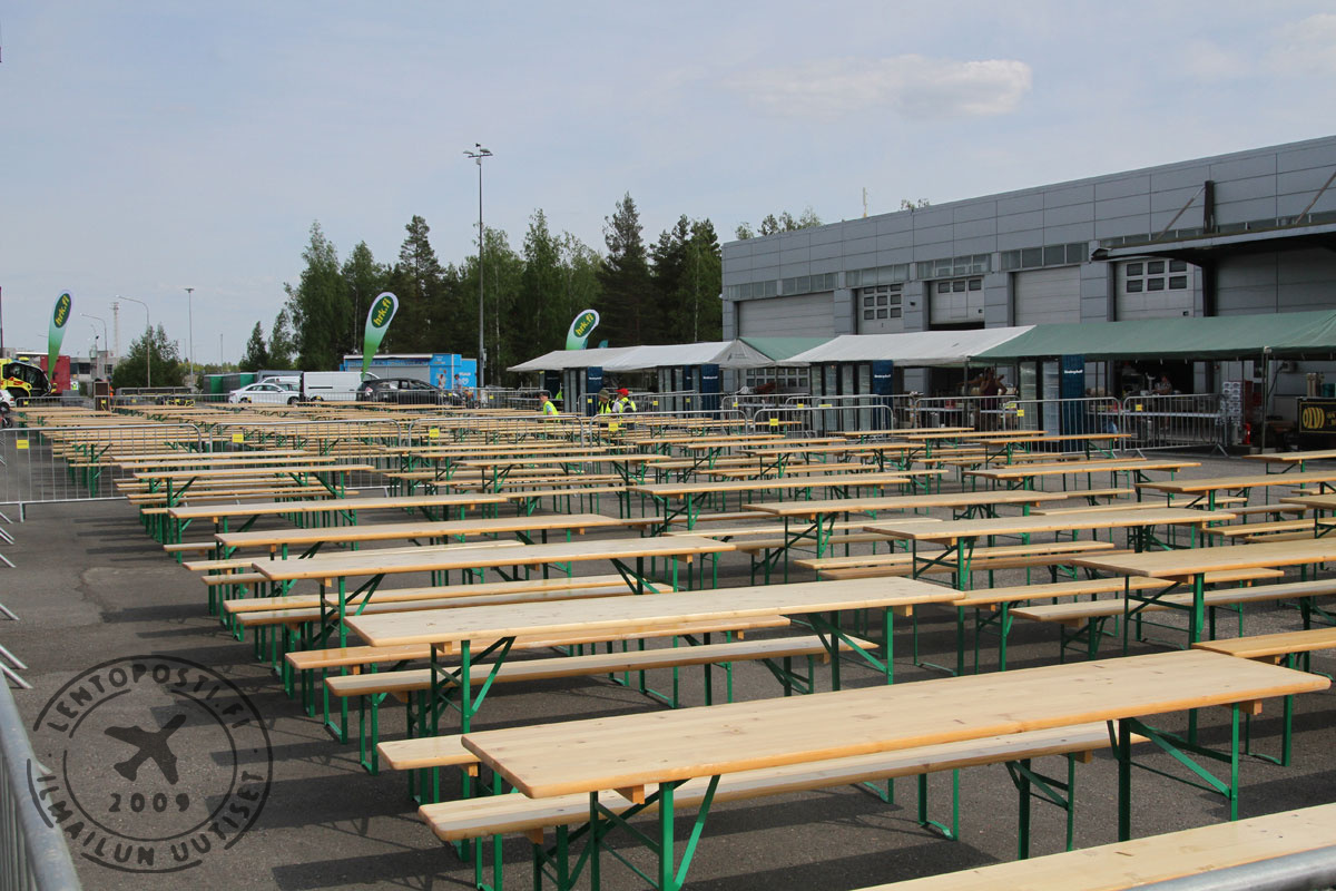 Lentonäytösalueelle saa tuoda yhden avaamattoman puolen litran juomapullon, joka ei saa sisältää alhoholia. Tämän lisäksi voi ottaa mukaan myös tyhjän vesipullon, jonka voi täyttää vedellä vaikka heti sisääntulon jälkeen. Alueelle on luvassa myös vesiämpäreitä, joissa voi kastaa hattunsa ja viilentää oloaan.