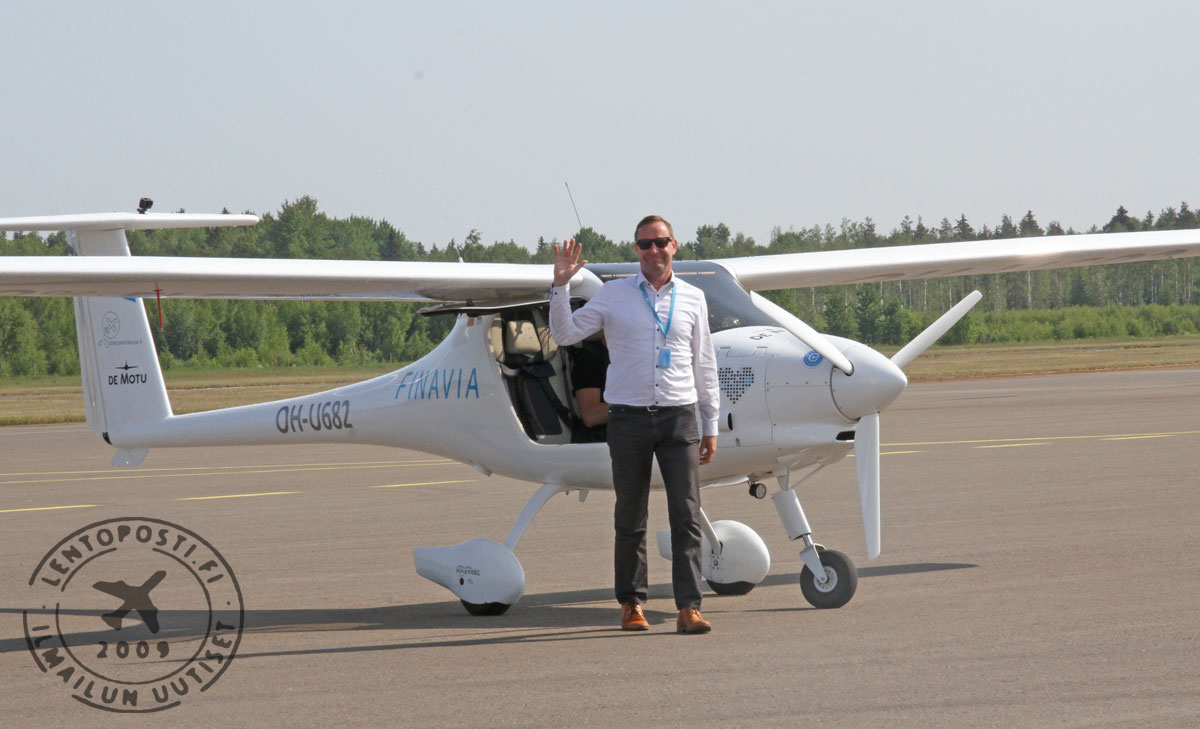 Maanäyttelyssä siviili-ilmailun tulevaisuutta edustaa Helsingin sähkölentokoneyhdistyksen Pipistrel Alpha Elektro -sähkölentokone. Perjantaina sähkölentokoneesta sai ensikokemuksia Finavian toimitusjohtaja Kimmo Mäki.