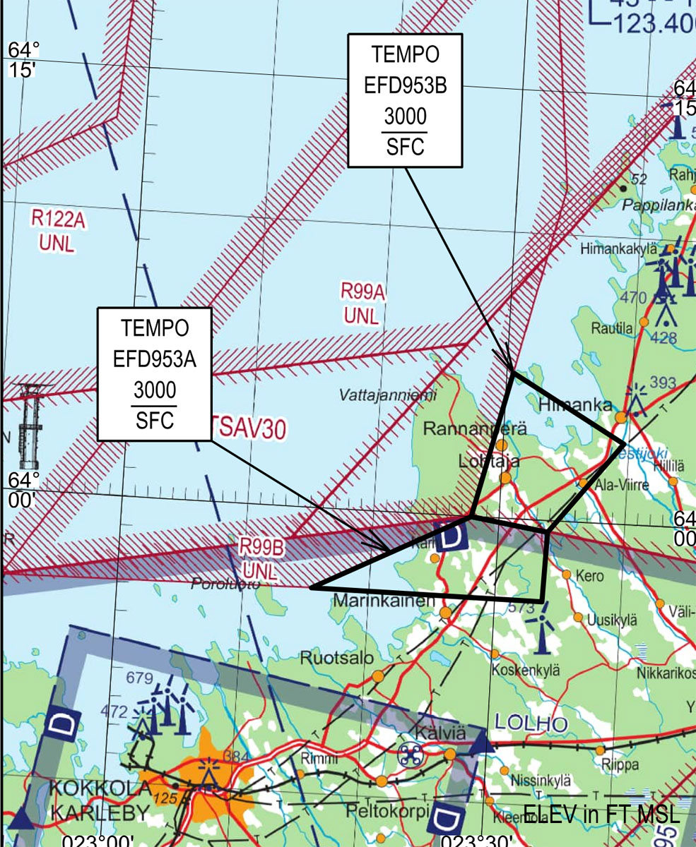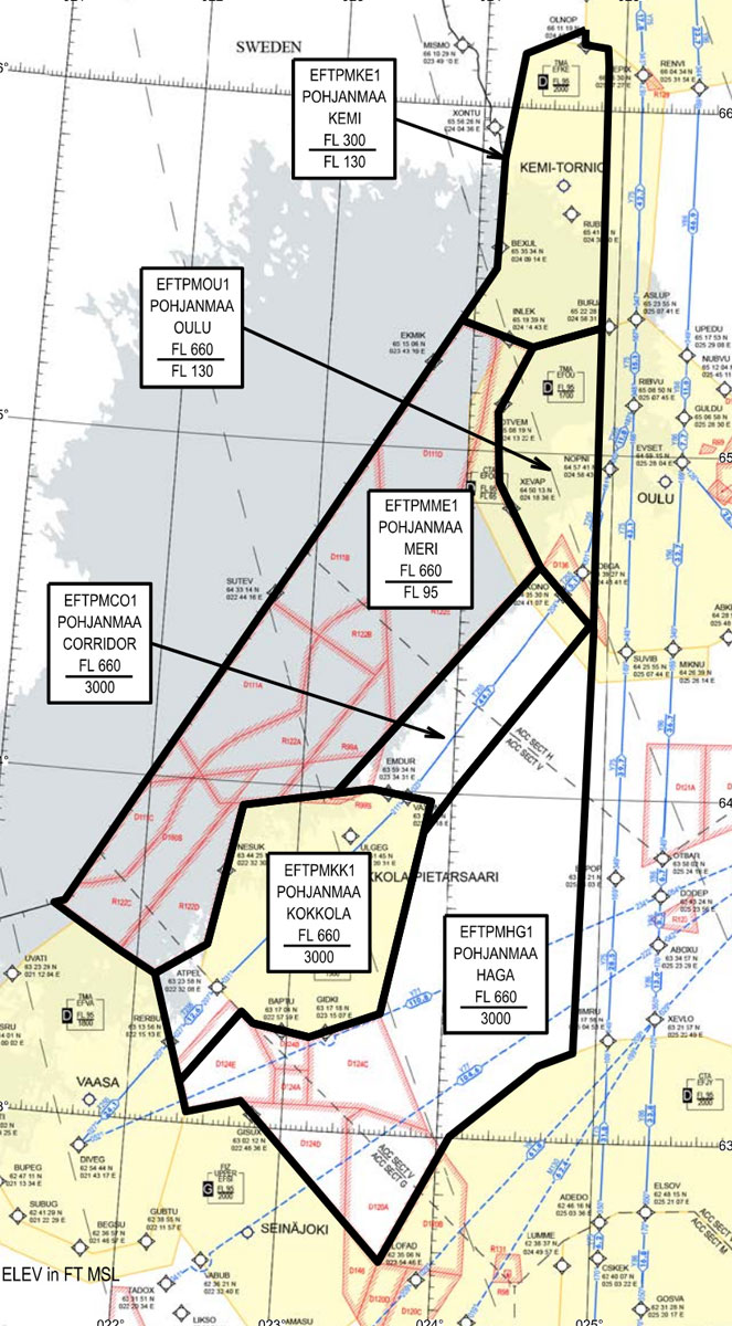 Alueella lentävällä miehittämättömällä ilma-aluksella ei ole sille varatulla vaara-alueella väistövelvoitetta muuhun ilmaliikenteeseen. Toiminta vaara-alueella voidaan keskeyttää tai sitä voidaan rajoittaa Kokkola-Pietarsaareen saapuvan tai lähtevän lentoliikenteen vaatiessa.