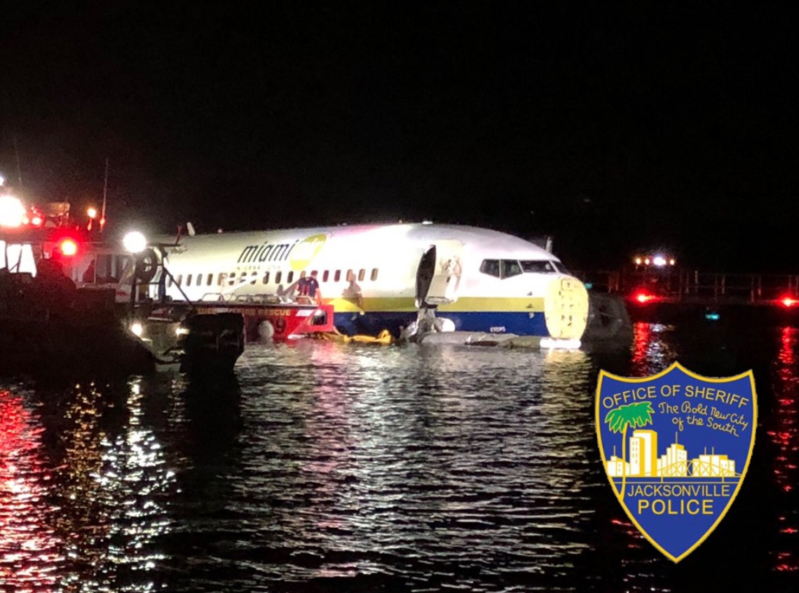 Yhdysvaltain puolustusvoimien tilauslennolla ollut Miami Airin Boeing 737-800 -matkustajakone (N732MA) on liukunut laskeutumisen jälkeen jokeen Naval Air Station Jacksonvillessä Floridassa. Kukaan ei loukkaantunut onnettomuudessa. Boeing oli tulossa Yhdysvaltain Guantanamon tukikohdasta Kuubasta.