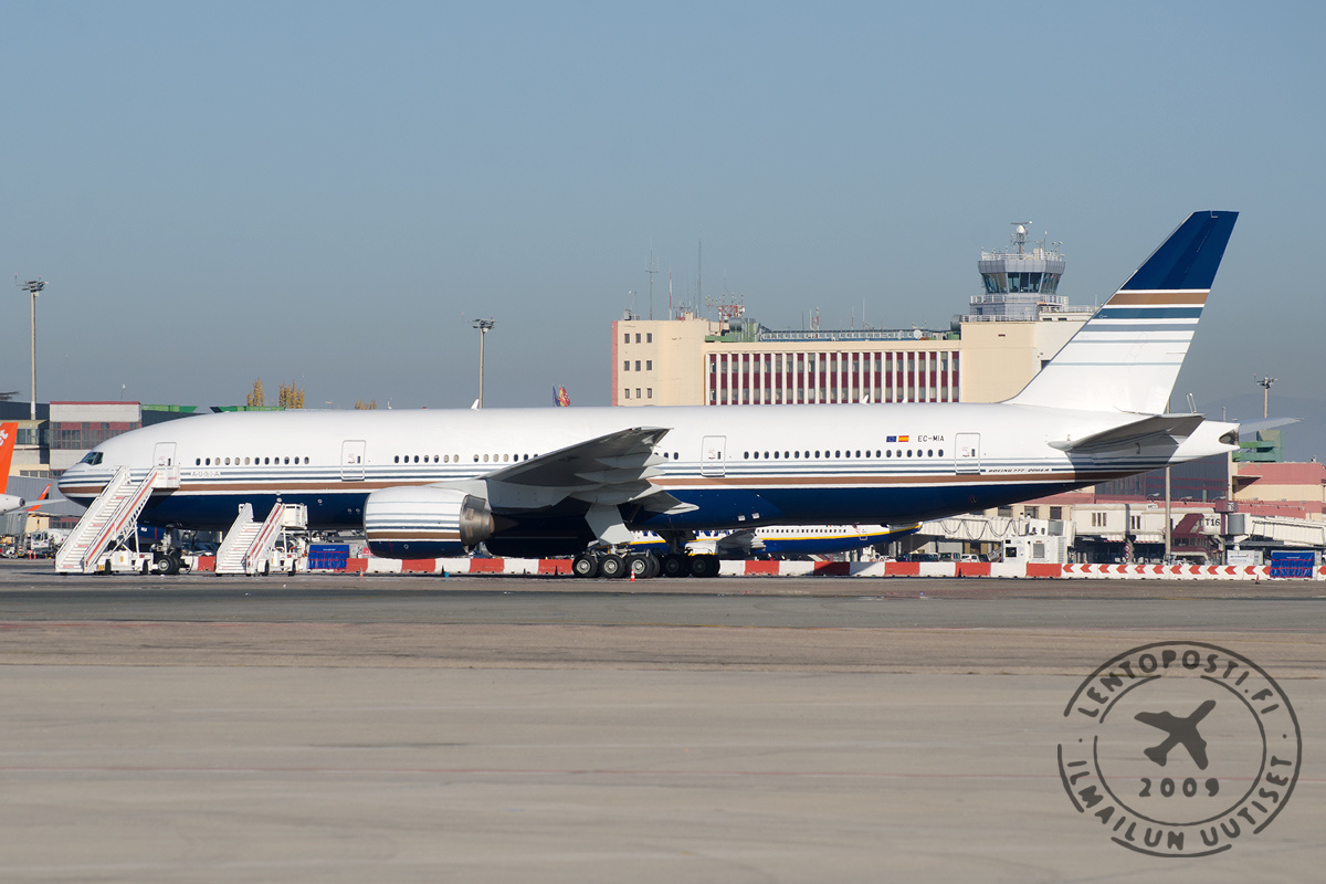 Lentoposti.fi:n tietojen mukaan Privilege Stylen vuonna 2002 valmistunella Boeing 777-200ER -matkustajakoneella (EC-MIA, MSN28685, kuvassa) ei olisi operoitu kaupallisia lentoja sitten siirtolennon, jolla kone saapui Madridiin ilmeisesti marraskuun lopulla 2015. Koneyksilön aikaisempi operaattori oli Asiana Airlines, joka on lentänyt koneella viimeisen kerran 8. syyskuuta. Sen jälkeen kone on siis ollut varastoituna Tarmac Aerosavella. Lue myös: