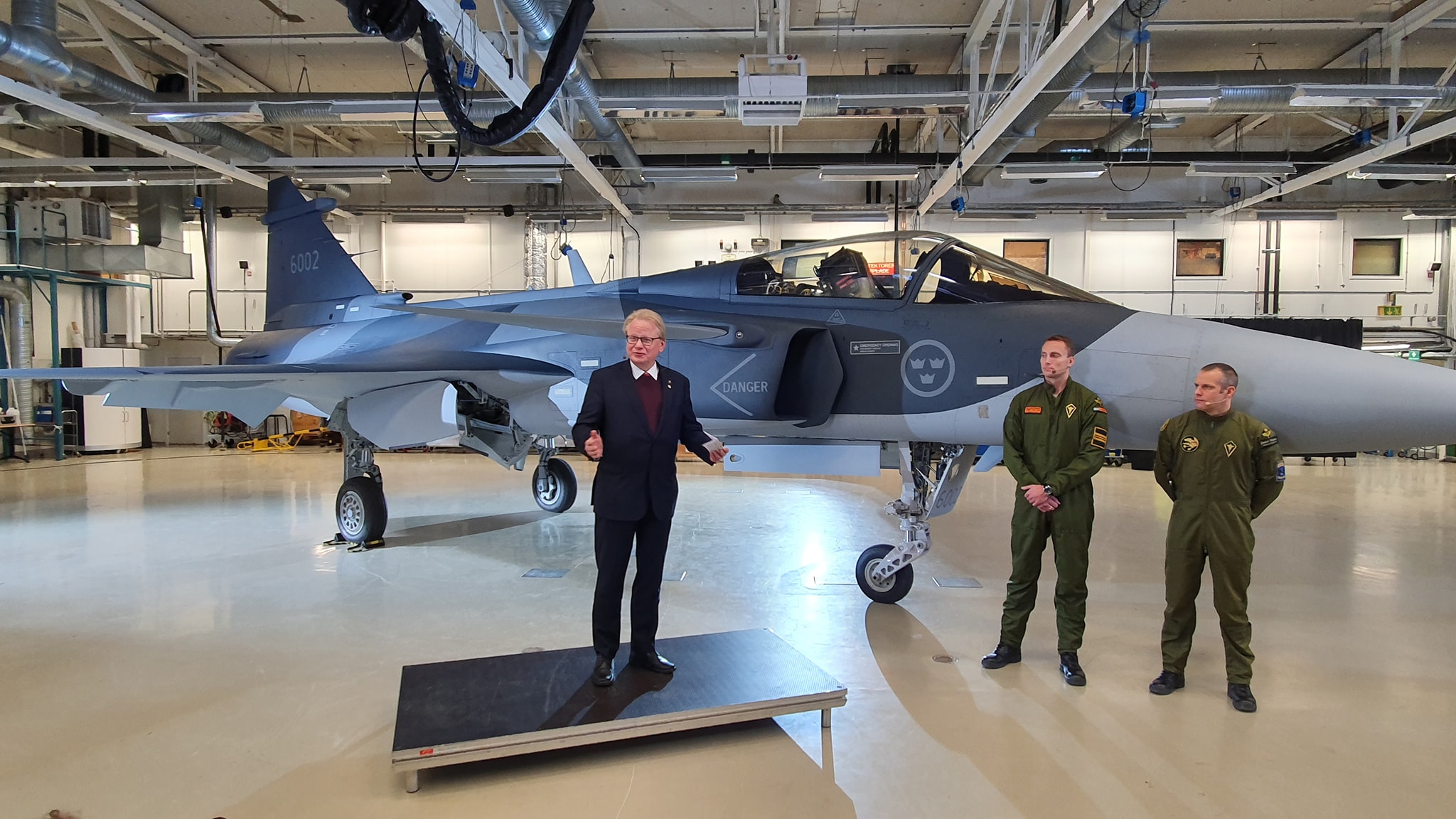 Ruotsin vastaanottama Gripen E (39-6002) teki ensilentonsa 30. marraskuuta 2019. Nyt toimitettu hävittäjä osallistuu seuraavaksi Saabin ja Ruotsin puolustusvoimien materiaalilaitoksen FMV:n yhteiseen koelento-ohjelmaan. Kaikkiaan Gripen E:n koelento-ohjelmaa lennetään viidellä Gripen E:llä sekä aiemmasta Gripen D -hävittäjästä muokatulla ns. 39-7 -koelentokoneella. Hävittäjän Ruotsin puolusvoimien materiaalilaitos FMV:lle vastaanottivat Ruotsin puolustusministeri Peter Hultqvist ja Ruotsin Ilmavoimien komentaja kenraaliluutnantti Lars-Erik Englund. Saabin puolelta tilaisuudessa olivat mukana yhtiön hallituksen puheenjohtaja Marcus Wallenberg toimitusjohtaja Micael Johansson ja Saab Aeronauticsin toimitusjohtaja Jonas Hjelm.