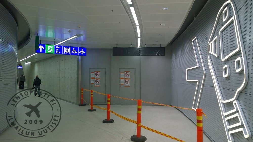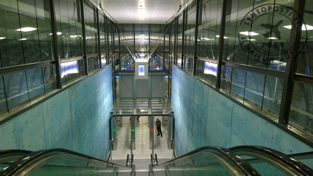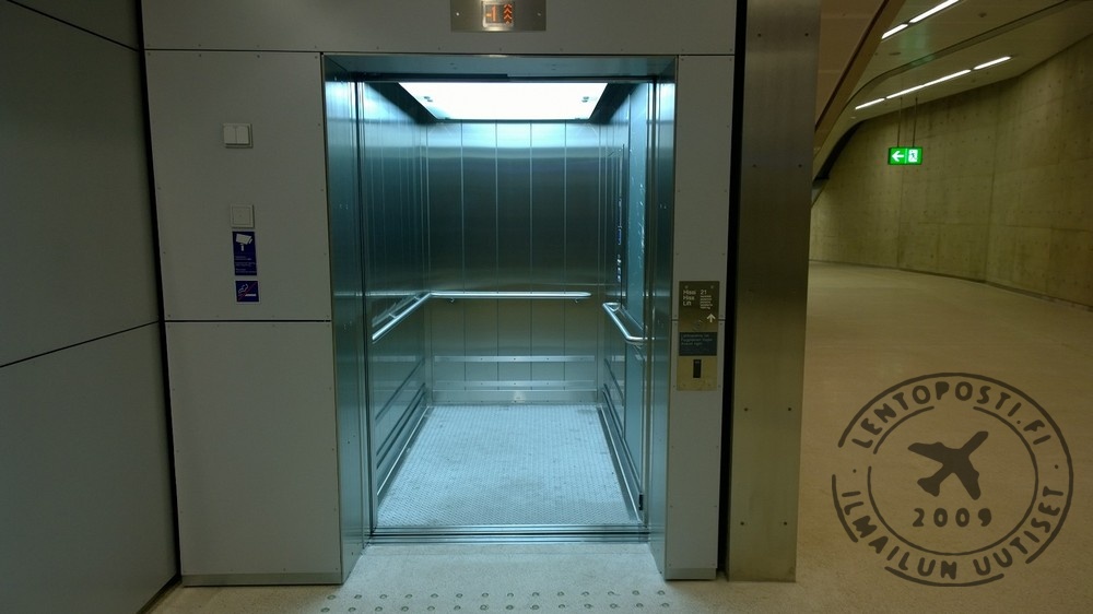 Kovakuntoisimmat voisivat teoriassa hyödyntää myös lentoaseman päässä olevaa hätäpoistumistien portaikkoa. Nousu on tosin niin pitkä (asema on 45 metriä maan alla), että matkatavaroiden kanssa sitä ei kannattaisi edes yrittää. Lisäksi porraskuilu aukeaa ulos terminaalin viereen, ei yhdyskäytävälle eli normaalikäyttöön sitä ei ole tarkoitettu.