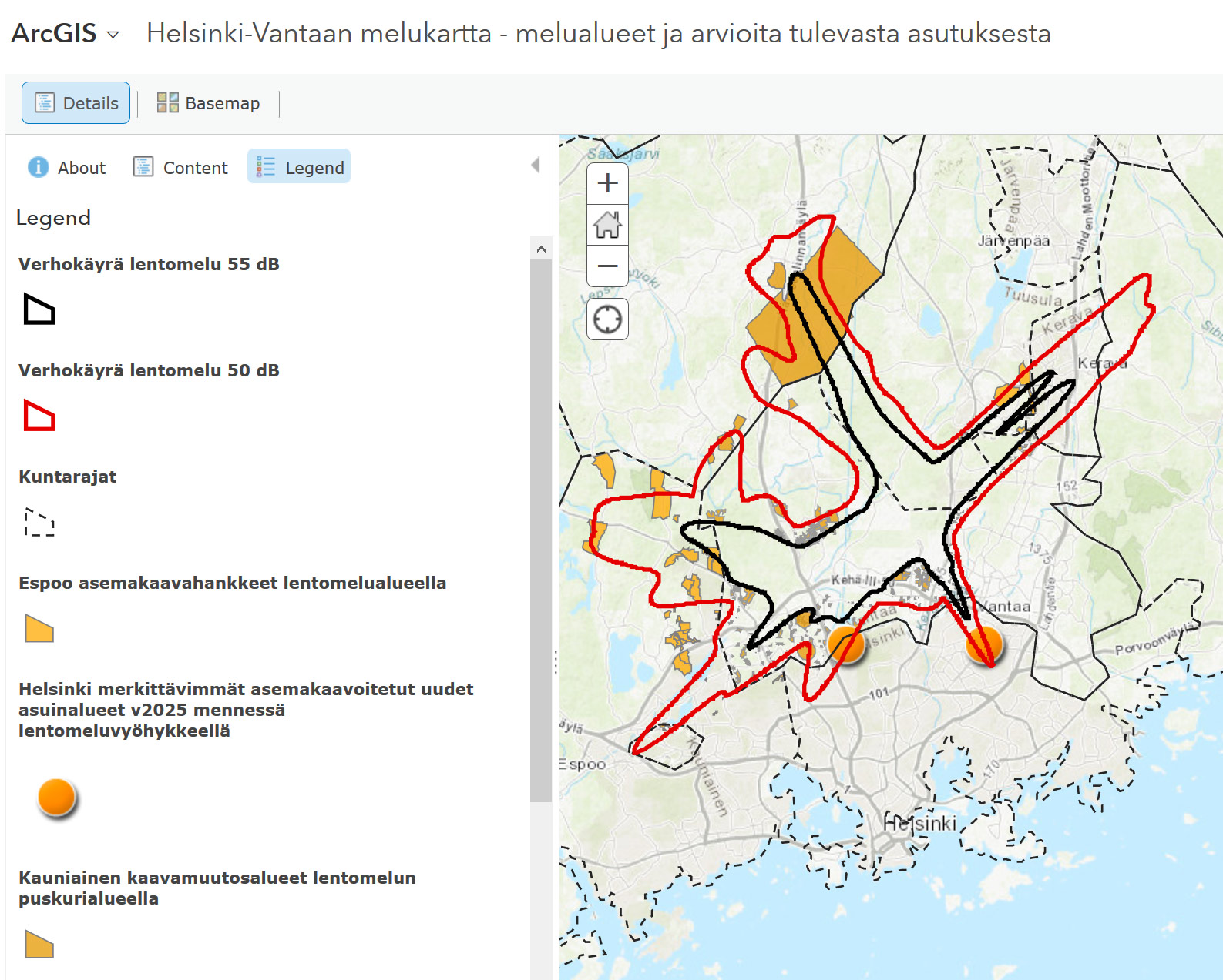 Kartalta voi tarkastella asuinrakentamisen kaavoitustilannetta ja -suunnitelmia nykyiselle melualueelle ja nk. puskurivyöhykkeelle. Kartassa olevien uusien kaava-alueiden suunnitelmallinen aikajänne on useita vuosikymmeniä ja niiden toteutumiseen liittyy epävarmuustekijöitä, joten kartta on suuntaa antava. Liikenne- ja viestintäministeriön vuonna 2016 koolle kutsumassa ja Trafin vetämässä Helsinki-Vantaan melunhallinnan yhteistyöryhmässä seurataan vuosittain melutilannetta ja siinä tapahtuvia muutoksia. Vuosittaisen seuranannan lisäksi varsinainen kokonaisvaltaisempi melutavoitteen seuranta tehdään viiden vuoden välein. ”Yhteistyöryhmässä melutilanteeseen vaikuttavista tekijöistä saadaan mahdollisimman laaja kokonaiskuva ja pyritään yhdessä tunnistamaan ja löytämään kestäviä, pitkäjänteisiä ja mahdollisimman toimivia ratkaisuja”, jatkaa Trafin Outi Ampuja. Ryhmä seuraa indikaattoreiden tuottaman tiedon kautta, miten lentoaseman meluntorjuntatavoitteen ennakoidaan tulevaisuudessa toteutuvan ja mitä toimenpiteitä eri viranomaiset ja muut toimijat ovat tehneet ja tulevat tekemään lentoliikenteen melun ja sen haittavaikutusten vähentämiseksi tasapainoisen lähestymistavan mukaisesti. Työryhmässä ovat edustettuina Liikenne- ja viestintäministeriö, ympäristöministeriö, sosiaali- ja terveysministeriö, Etelä-Suomen aluehallintovirasto, Uudenmaan elinkeino-, liikenne- ja ympäristökeskus, Uudenmaan liitto, Puolustushallinto, alueen kunnat (Espoon kaupunki, Helsingin kaupunki, Järvenpään kaupunki, Kauniaisten kaupunki, Keravan kaupunki, Nurmijärven kunta, Sipoon kunta, Tuusulan kunta ja Vantaan kaupunki), Finavia Oyj , Air Navigation Services Finland Oy ja suurimmat lentoyhtiöt sekä Trafi. Karttapalvelu: Lentomelun puskurivyöhykkeet ja asuinrakentamisen kaavoitustilanne karttapalvelussa Yhteistyöryhmän vuosiraportti kokonaisuudessaan Liikennefakta.fi-sivulla. Lue myös: