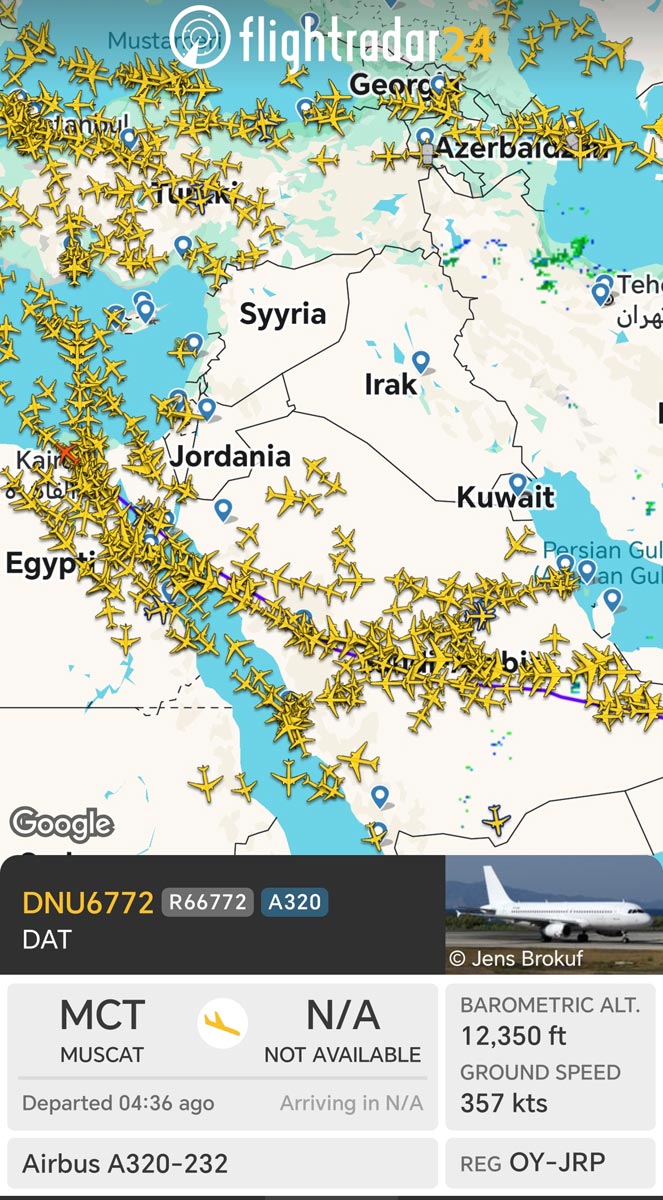 Suomen ulkoministeriön kotiutuslento Läitä-itään sotatoimien jalkoihin jääneille matkustajille on lähtenyt suunnitellusti matkaan Omanin Muscatista sunnuntaina 8. maaliskuuta 2026. Lennon operoi DAT kuten Lentoposti.fi kertoi aiemmin. Suomeen lento saapuu aamuyöllä odotetusti Egyptin Alexandriassa tehdyn välilaskun ja tankkauksen jälkeen.