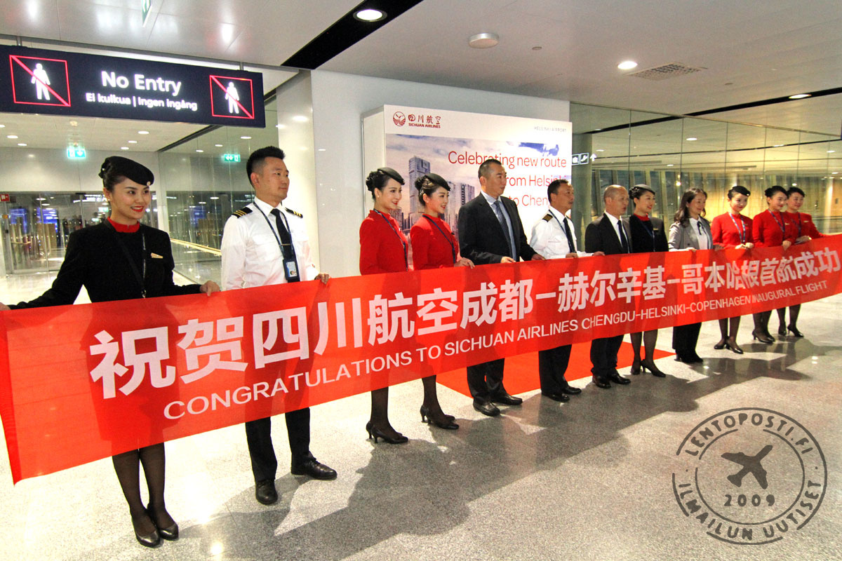 Sichuan Airlines avasi lennot Chengdusta Kööpenhaminaan joulukuussa 2018. Nyt 16. syyskuuta lähtien tehdään välilasku Helsinki-Vantaalla. Reittiä lennetään kahdesti viikossa. Reittiä lennetään kahdesti viikossa ja lentopäivät ovat maanantai ja perjantai. Sichuan Airlines lentää Chengusta myös muualla Eurooppaan. Muita kohteita ovat Moskova, Pietari, Praha ja Zürich. Uusi yhteys Kööpenhaminaan tuo haasteita matkustajavirtoihin