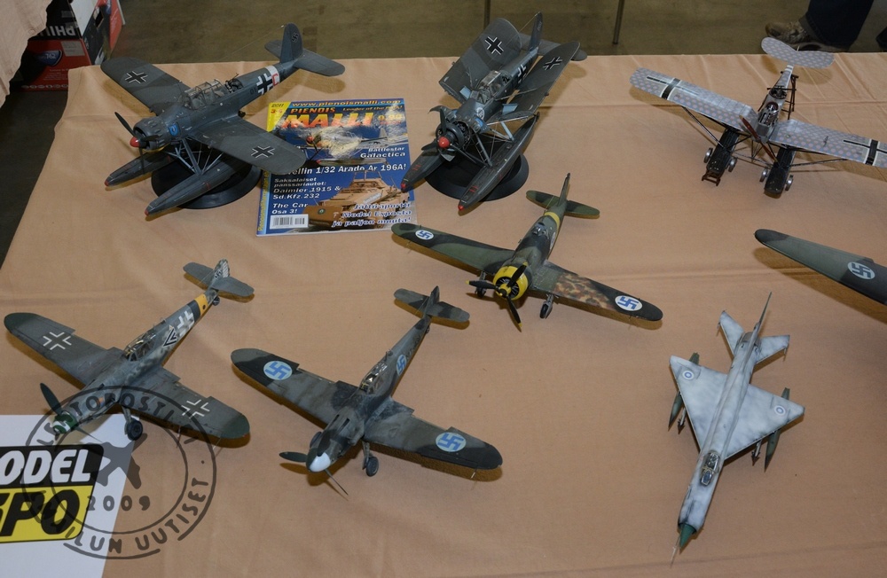 Esillä on noin 1500 eri harrastusalueita edustavaa pienoismallia. Osa niistä on perinteisiä lentokoneiden muovimalleja eli "koottavia", mutta toki nykytyyliin tarkasti esikuviensa mukaiseksi viimeisteltyinä ja käytön jäljet näyttävinä (klikkaa kuvat suuremmaksi). Mukana on yli 200 näytteilleasettajaa. Osa aiemmista Model Expon vakio-osallistujista kuitenkin puuttuu, näkyvimpänä ehkä Suomen Ilmailukauppa eli entinen SIL Shop.
